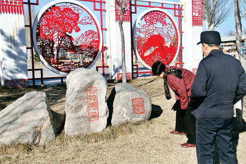 2月16日,原平市民正在觀賞范亭文體景觀文化墻。該市著力打造文化強市,利用城鄉(xiāng)墻體繪制人文地理、名勝景觀、歷史古跡等,傳播文化正能量,營造濃厚的文化氛圍,這也成為城鄉(xiāng)一道靚麗風(fēng)景。(褚震 攝)