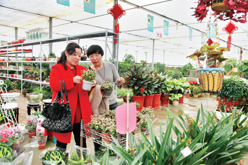 2月16日,市民在忻州城區(qū)七一南路的“陳紅花卉”批發(fā)市場(chǎng)選購(gòu)花卉?!岸拘袆?dòng)”開(kāi)展以來(lái),忻府區(qū)發(fā)揮區(qū)位優(yōu)勢(shì),大力扶持發(fā)展特色觀賞農(nóng)業(yè),為農(nóng)民增收挖掘新的經(jīng)濟(jì)增長(zhǎng)點(diǎn)。春節(jié)期間,一批像“陳紅花卉”大棚一樣的花卉種植戶獲得了較高的經(jīng)濟(jì)收入。(侯睿 攝)