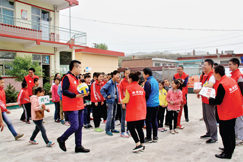 近日,太原市善林金融30 余名志愿者來到靜樂縣西會中心小學,開展關(guān)愛留守兒童志愿服務(wù)活動,為孩子們送去了排球、羽毛球、跳繩、乒乓球臺等體育用品和設(shè)備,并與孩子們分享了中國女排頑強拼搏的故事,鼓勵孩子們自強不息、快樂成長。(劉盛甫 攝)
