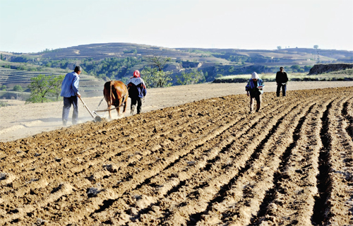 入夏以來(lái),河曲縣山區(qū)農(nóng)村進(jìn)入繁忙季節(jié),梁峁溝坡,廣闊的田野上隨處可見(jiàn)農(nóng)民在耕地、施肥、鋪膜、下種緊張忙碌的身影,構(gòu)成一幅幅山區(qū)農(nóng)村美麗的農(nóng)忙畫(huà)卷。圖為五月十七日,鹿固鄉(xiāng)下榆泉村村民在耕地種植高產(chǎn)玉米。(鄔耿杰 攝)