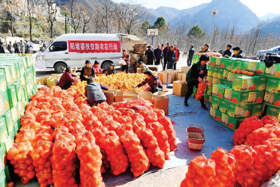 定襄縣河邊鎮(zhèn)東峪山區(qū)今年柿子喜獲豐收,但由于通往該地的唯一公路在五臺段遭遇塌方后正在搶修,致使交通不暢,游客銳減,小商小販的農(nóng)用車輛進出不便,200萬斤柿子滯銷。縣鄉(xiāng)兩級黨委政府急農(nóng)民所急,一方面協(xié)調(diào)有關(guān)部門打通便道,讓商販進山,一方面發(fā)動本地青年電商志愿者向全國發(fā)貨,連日來已有50萬斤柿子通過電商平臺銷往全國各地。圖為陽坡婆電商在戎家莊服務(wù)點現(xiàn)場裝箱發(fā)貨。(張晉蘭 攝)