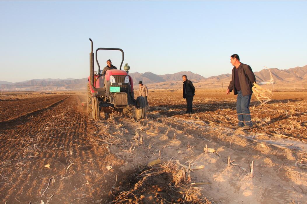 王莊村秸桿清理后農(nóng)機(jī)旋耕。