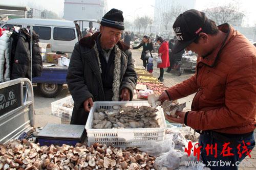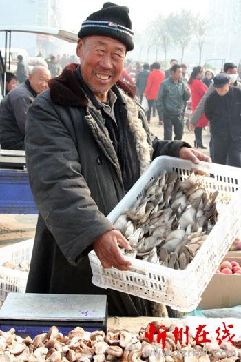 11月17日,原平市五彥村農(nóng)民白銀鎖正在市場上銷售鮮蘑菇,豐收的鮮蘑上市,使他喜上眉梢,甜在心頭。該市大力發(fā)展一村一品高效設(shè)施種植業(yè),讓農(nóng)民得到實實在在的實惠。他們高興地說,大棚種植業(yè)如今成為農(nóng)民勤勞致富的聚寶盆。(趙春曉 攝)