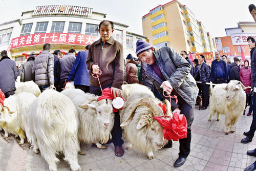 2月28日,偏關(guān)縣第十七屆賽羊大會(huì)隆重舉行,來自全縣10個(gè)鄉(xiāng)鎮(zhèn)的50多支養(yǎng)殖戶代表隊(duì)參加了角逐。經(jīng)專家評(píng)委從品種、體重、口齡、產(chǎn)絨量等方面綜合評(píng)比,最終評(píng)出一等獎(jiǎng)1名、二等獎(jiǎng)2名、三等獎(jiǎng)3名、綜合獎(jiǎng)6名、組織獎(jiǎng)5名,極大地調(diào)動(dòng)了農(nóng)民養(yǎng)羊的積極性。(班彥欽 樊文珍 攝)