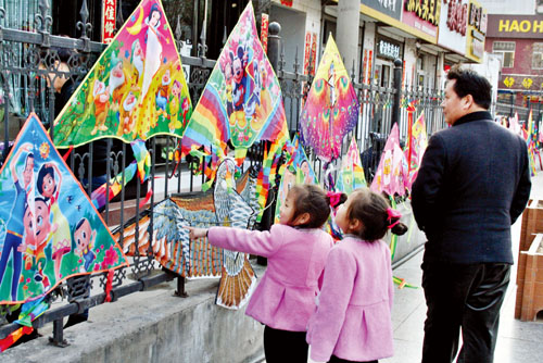 隨著天氣轉(zhuǎn)暖,市民戶外活動(dòng)增加,“兒童散學(xué)歸來(lái)早,忙趁東風(fēng)放紙鳶?!贝笕诵『⒐蚕泶旱臍庀ⅰD為3月11日,原平市民正在廣場(chǎng)上挑選五顏六色的風(fēng)箏,童話人物的風(fēng)箏備受孩子們喜愛(ài)。(趙春曉 攝)