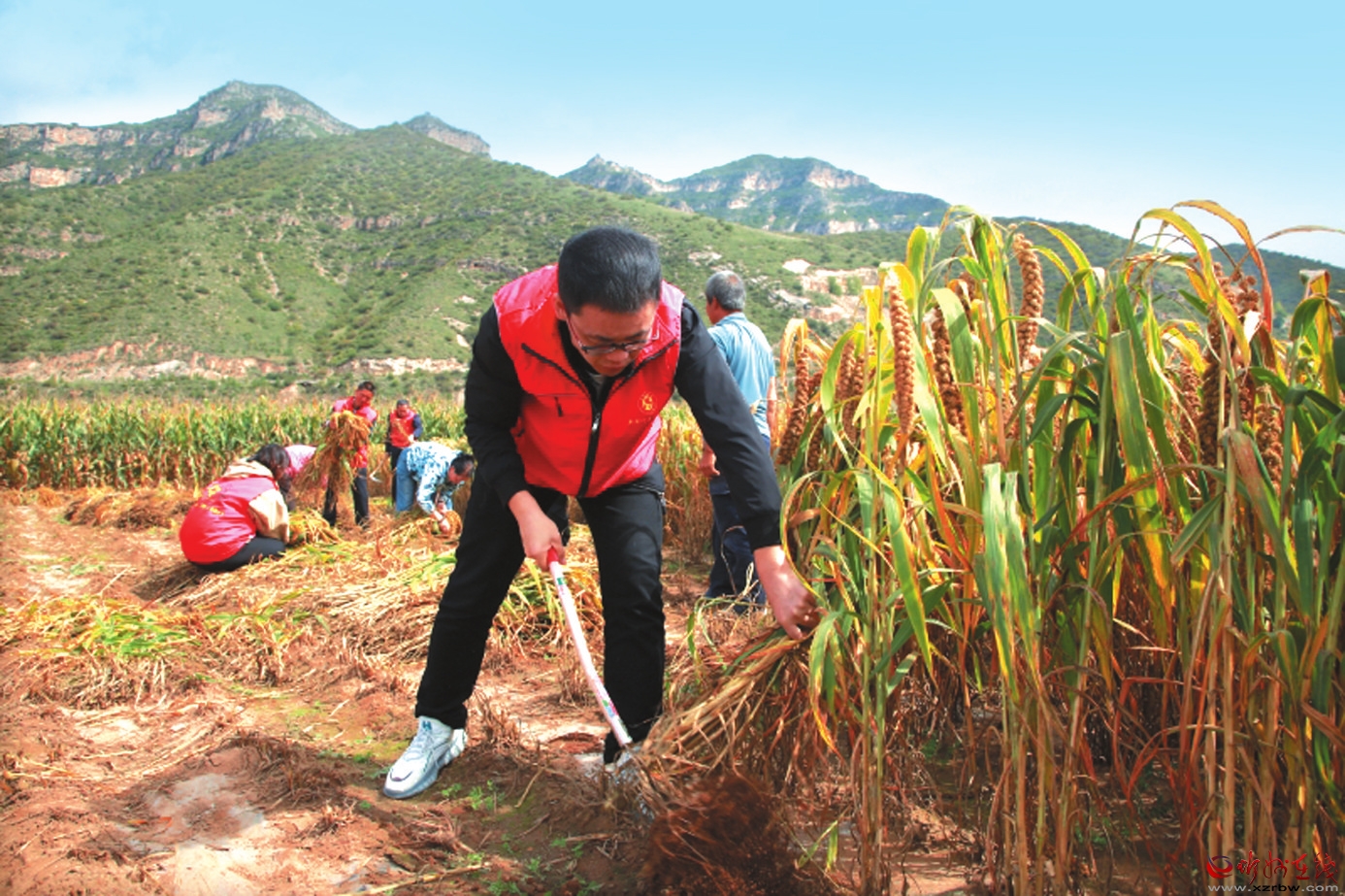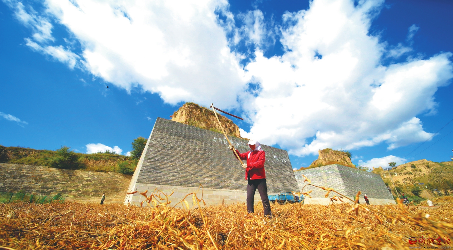 9月24日,保德縣義門鎮(zhèn)崔家堎村的農(nóng)戶在收割黍子。 崔 莉攝