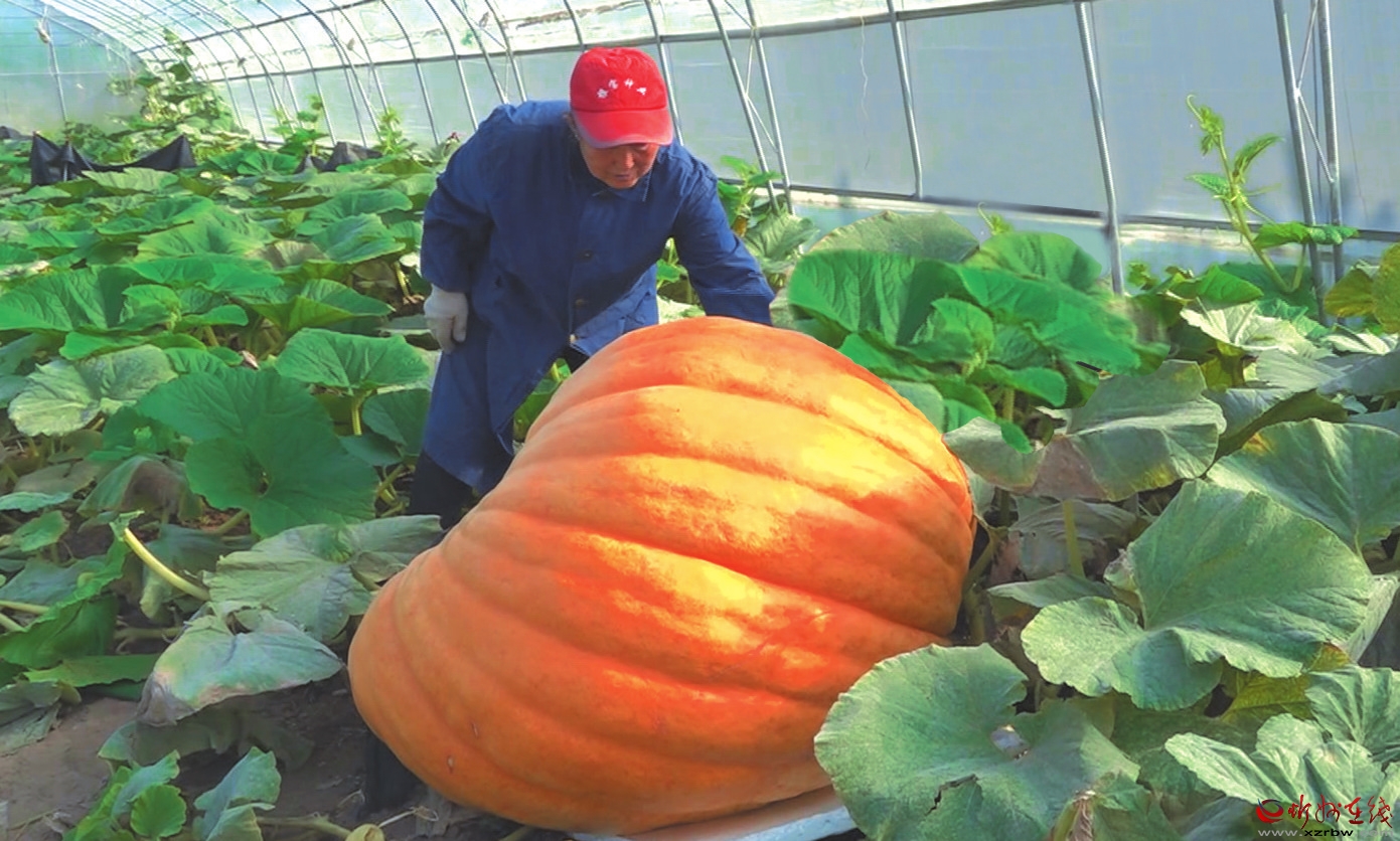 神池現(xiàn)代農(nóng)業(yè)產(chǎn)業(yè)示范區(qū)約500斤重的巨型南瓜。 續(xù) 琴攝