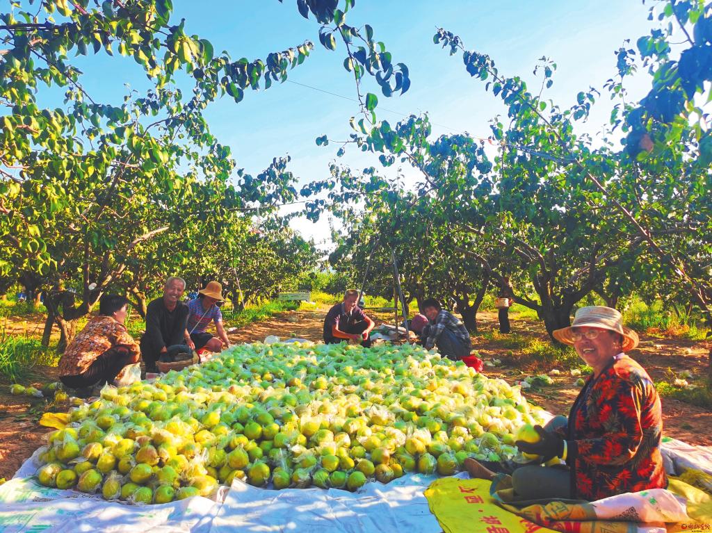 原平市子干鄉(xiāng)東南賈村果農(nóng)搶抓晴好天氣采摘玉露香梨。 褚 震攝