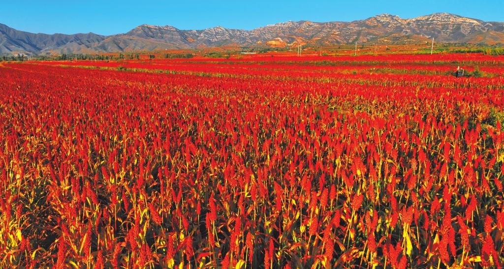 定襄縣河邊鎮(zhèn)、蔣村鎮(zhèn)、南王鄉(xiāng),地處縣城東部。兩鎮(zhèn)一鄉(xiāng)地域南北貫通,坡地相連,適宜大面積種植小雜糧。秋日,紅彤彤的高粱迎風(fēng)搖曳,成為一道美麗的風(fēng)景線。 張晉蘭攝