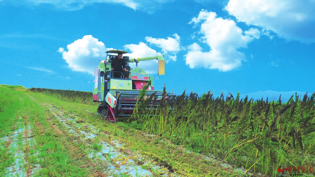 收割機(jī)在繁峙縣大營鎮(zhèn)藜麥種植基地現(xiàn)場作業(yè)。 李 瑾攝