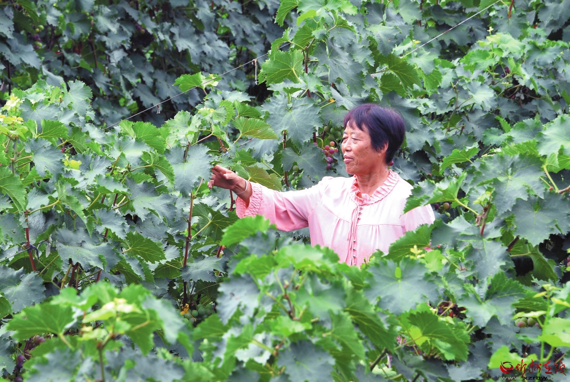 忻府區(qū)楊胡村農(nóng)民劉玉珠正在采摘葡萄。 本報(bào)記者 劉紀(jì)森攝