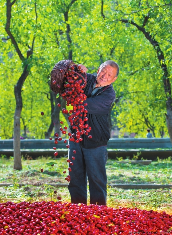 游客沉浸在收獲紅棗的喜悅中。