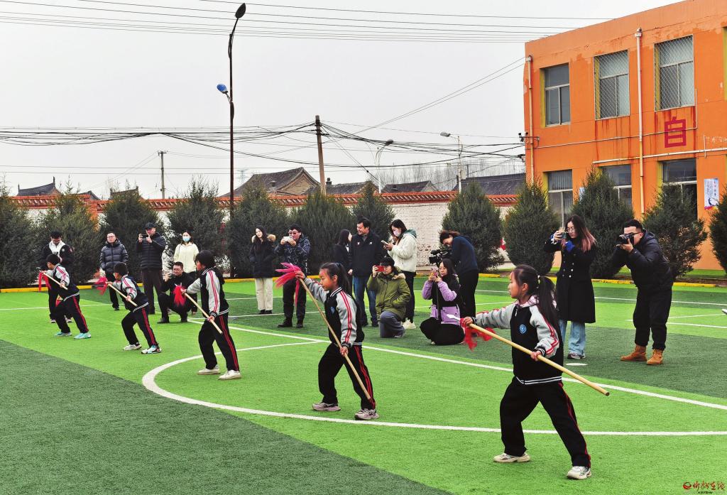 棗林鎮(zhèn)段村新旺小學(xué)學(xué)生現(xiàn)場表演楊家武術(shù)