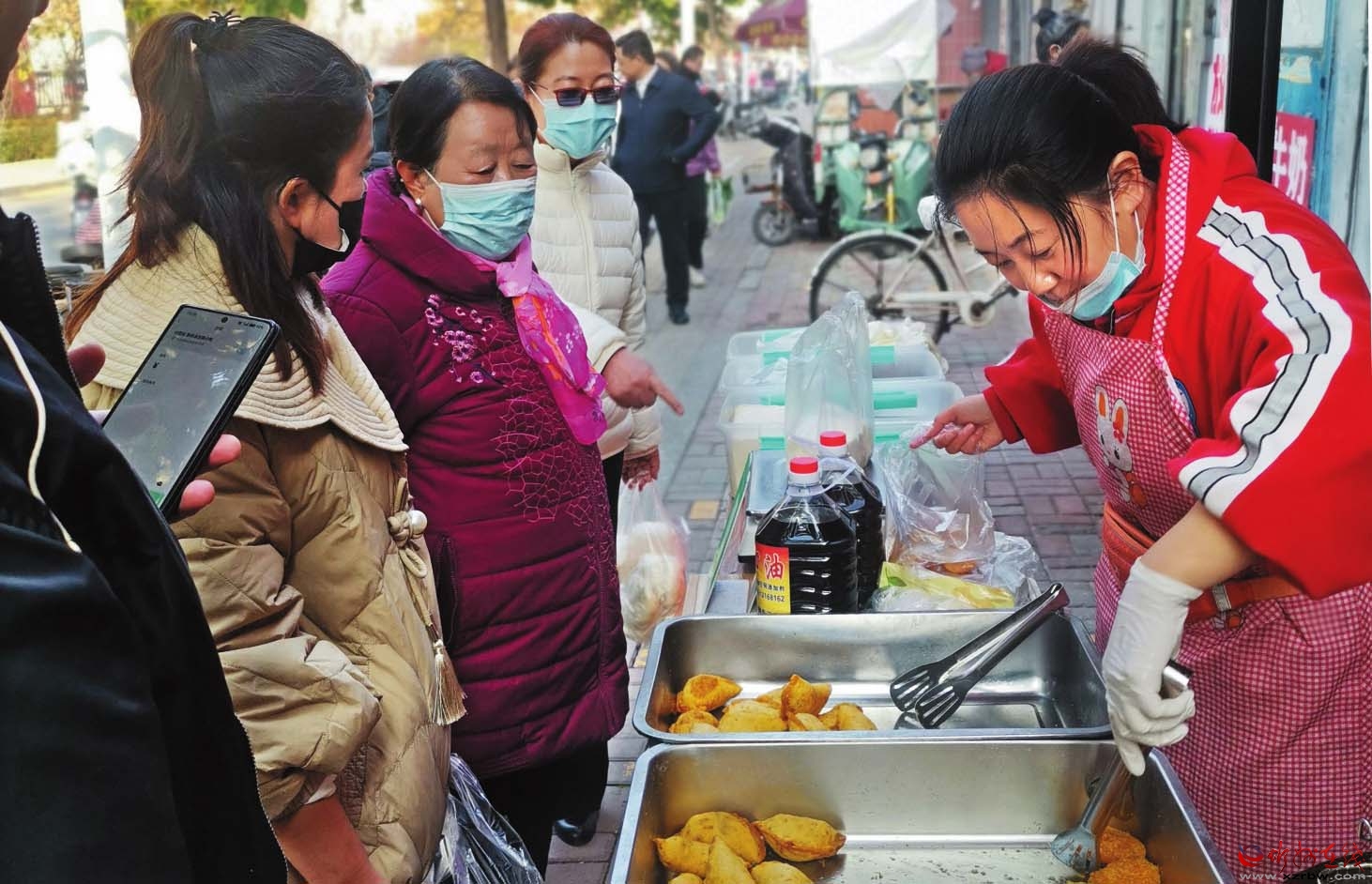 連日來,我市氣溫驟降,但餐飲市場的消費熱情卻絲毫未減。圖為市民在利民西街市場購買本地特色小吃。(