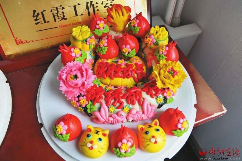 到2016年底,紅霞鄉(xiāng)情手藝坊已經(jīng)吸收了當?shù)氐臒o業(yè)和殘疾姐妹們20余人。人多力量大,她們的花饃產(chǎn)品種類日益豐富起來。