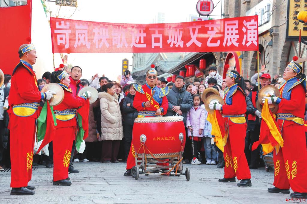2月10日,忻州古城舉辦了一場(chǎng)精彩的岢嵐秧歌表演。演員們身著鮮艷的服飾,敲鼓打鈸,節(jié)奏明快,氣氛熱烈,生動(dòng)展現(xiàn)了山西傳統(tǒng)民俗文化的獨(dú)特魅力,群眾紛紛駐足欣賞。(記者 范 琛攝)