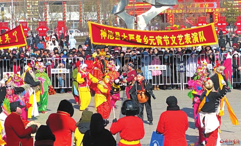 踢鼓子秧歌是神池縣正月里的傳統(tǒng)民俗活動(dòng)之一。2月13日,在該縣人民廣場(chǎng)的文藝展演活動(dòng)現(xiàn)場(chǎng),數(shù)千名群眾歡聚一堂,共享省級(jí)非物質(zhì)文化遺產(chǎn)踢鼓子秧歌的魅力,度過(guò)了一個(gè)歡樂(lè)、祥和、富含文化韻味且極具神池地方特色的元宵佳節(jié)。(鄭志東 王彬奇攝)