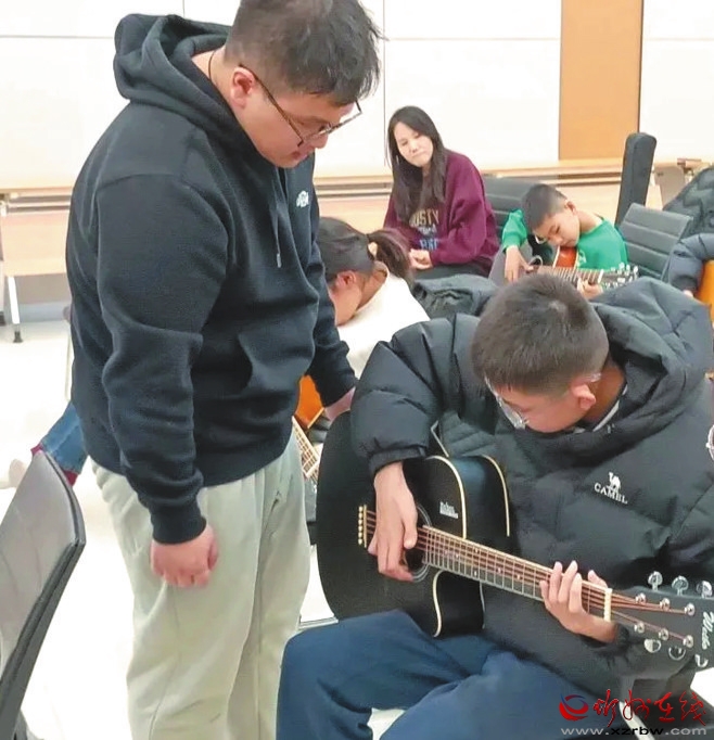 為進(jìn)一步豐富青少年的精神文化生活,培養(yǎng)大家的音樂創(chuàng)造力及感受力,近日忻州市圖書館組織開展了吉他科普活動?;顒又?,老師熱情地給音樂愛好者們講解繪本故事《聲音是怎么來的》,帶領(lǐng)大家走進(jìn)大自然奇妙的聲音世界?;顒又羞€科普了吉他的基礎(chǔ)知識、和弦指法、彈唱技巧等,由淺入深,循序漸進(jìn),老師們手把手指導(dǎo)大家進(jìn)行練習(xí),現(xiàn)場形成了濃厚的學(xué)習(xí)氛圍。(段毓淼 攝影報道
