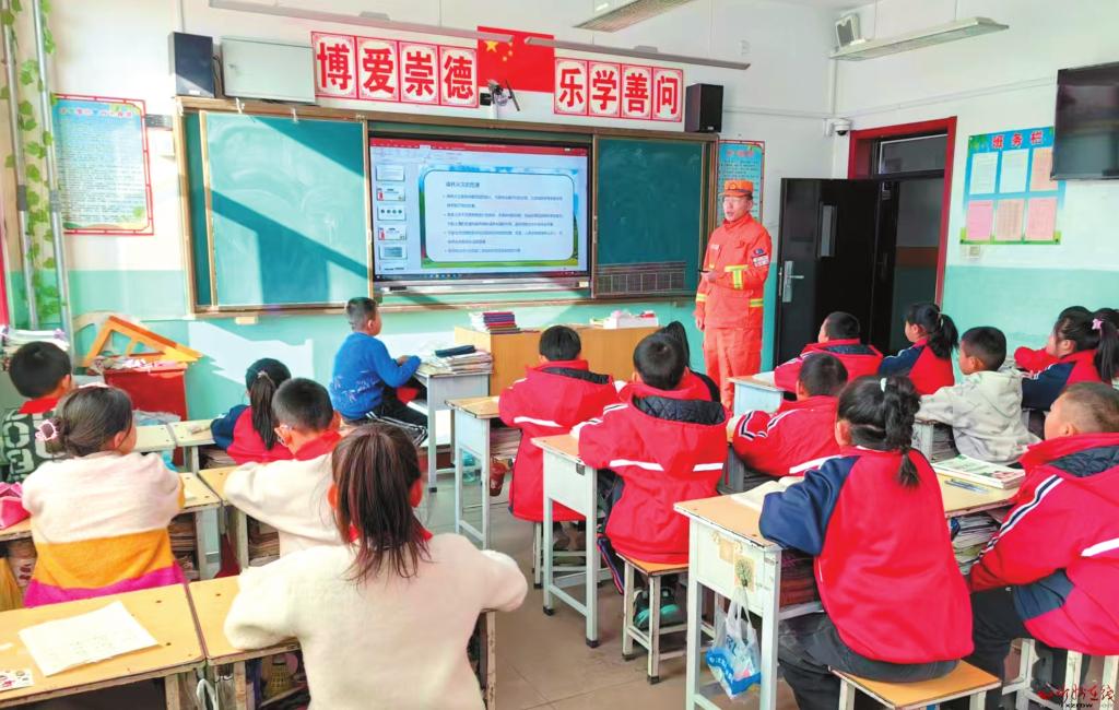 活動中,指戰(zhàn)員通過通俗易懂的語言、生動有趣的圖片、森林防火宣傳視頻等,為同學們深入淺出地講解了森林火災的成因、危害、預防措施以及緊急避險逃生方法等。(本報通訊員攝)