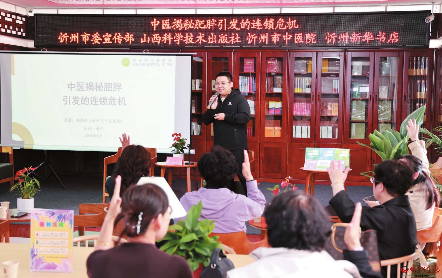 近日,忻州新華書店攜手市委宣傳部、山西科學(xué)技術(shù)出版社、市中醫(yī)院在忻州圖書大廈開展了以“中醫(yī)揭秘肥胖引發(fā)的連鎖危機(jī)”為主題的健康養(yǎng)生講座,旨在為大家傳遞實(shí)用的健康知識(shí),助力全民健康。 (記者 張存良攝)