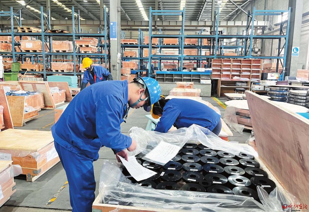 山西管家營法蘭鍛造股份有限公司嚴(yán)格管理、科學(xué)生產(chǎn),通過設(shè)備升級與技術(shù)創(chuàng)新,為企業(yè)發(fā)展注入新動能。圖為員工對外銷產(chǎn)品進(jìn)行檢測登記。(郭晶晶 劉婧攝