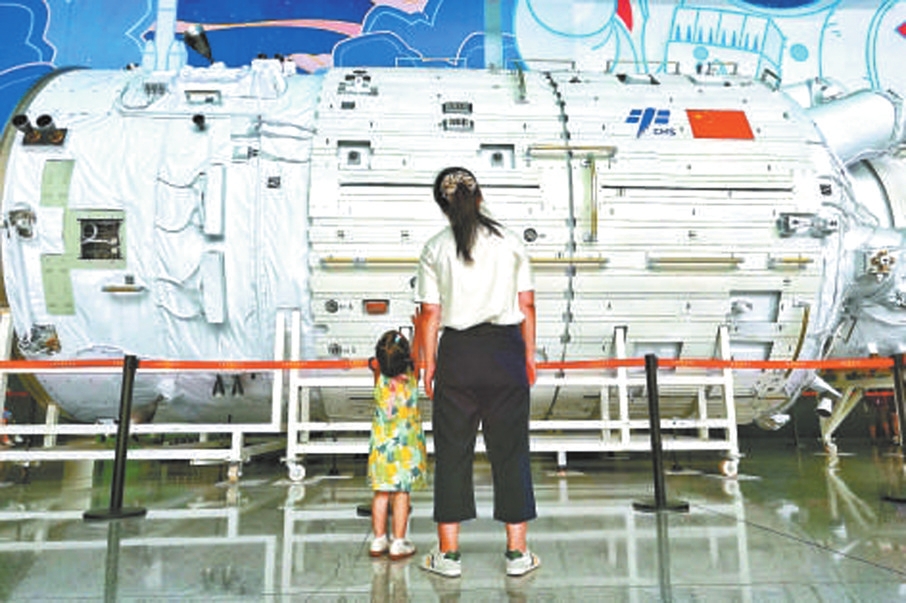 科技館里,媽媽帶著女兒仔細觀賞,將夢想的種子種在孩子小小的心靈里。張齊攝