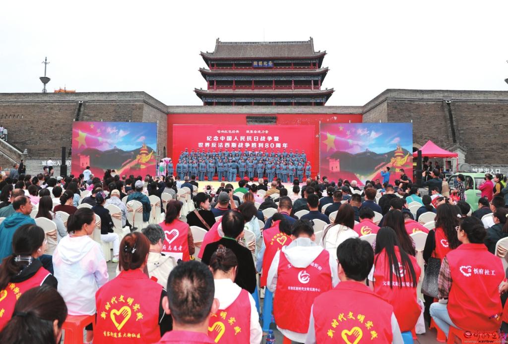 9月5日,由山西省文學(xué)藝術(shù)界聯(lián)合會(huì)指導(dǎo)、中共忻州市委宣傳部主辦、忻州市文學(xué)藝術(shù)工作者聯(lián)合會(huì)承辦的“唱響紅色經(jīng)典,凝聚奮進(jìn)力量”——紀(jì)念中國人民抗日戰(zhàn)爭暨世界反法西斯戰(zhàn)爭勝利80周年文藝展演在忻州古城北城門樓廣場舉行。(本報(bào)記者 張存良攝