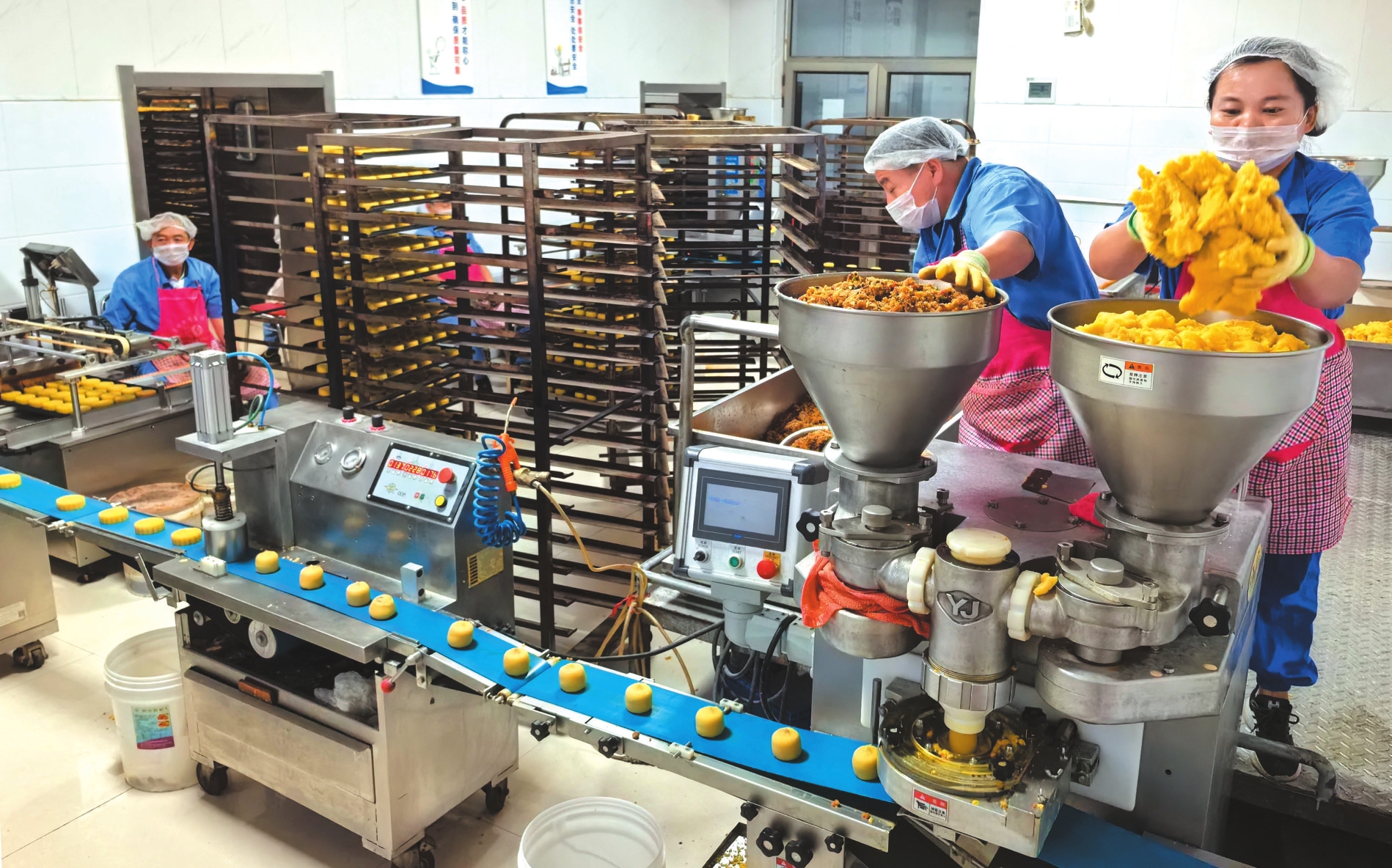 中秋節(jié)臨近,被譽為“中國北方月餅之鄉(xiāng)”的神池縣迎來月餅產(chǎn)銷旺季。近日,當?shù)卦嘛炆a(chǎn)企業(yè)開足馬力,加緊生產(chǎn),以保障節(jié)日市場供應(yīng)。(鄭志東攝)