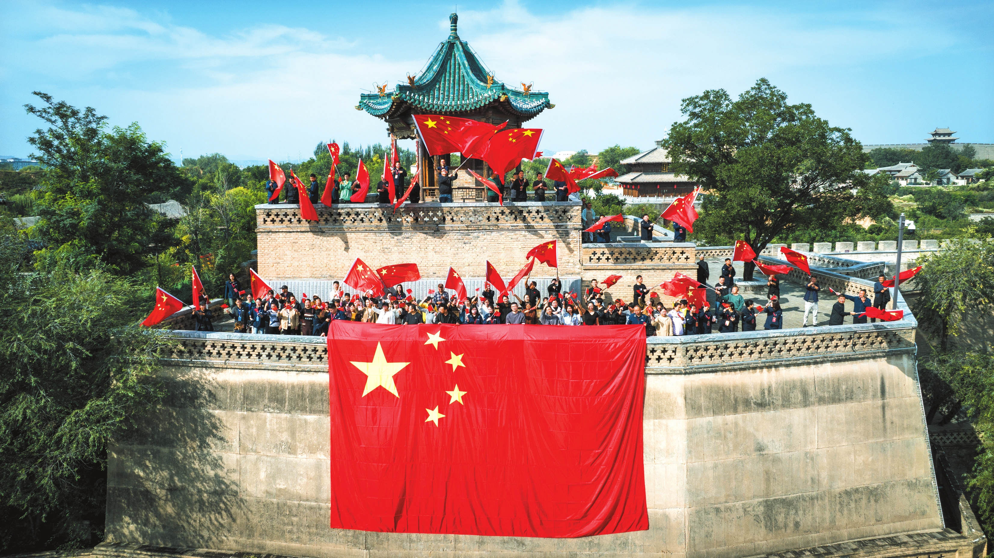 忻州古城工作人員和商戶喜迎國慶。石薦文攝