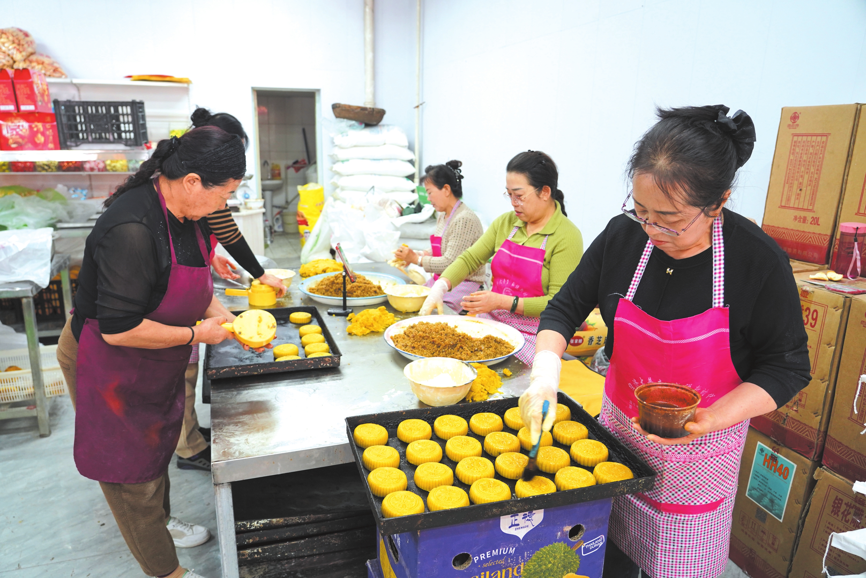 河曲縣城區(qū)的月餅店內(nèi)煙火氣十足。師傅們手法嫻熟地搟皮、包餡、壓模,將生胚送入烤爐。待月餅新鮮出爐,香氣四溢,引得市民爭相購買。 張玉潔攝