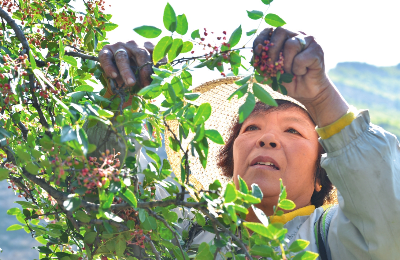 五臺(tái)縣陳家莊鄉(xiāng)羅家莊村農(nóng)民采摘花椒。盧俊華攝