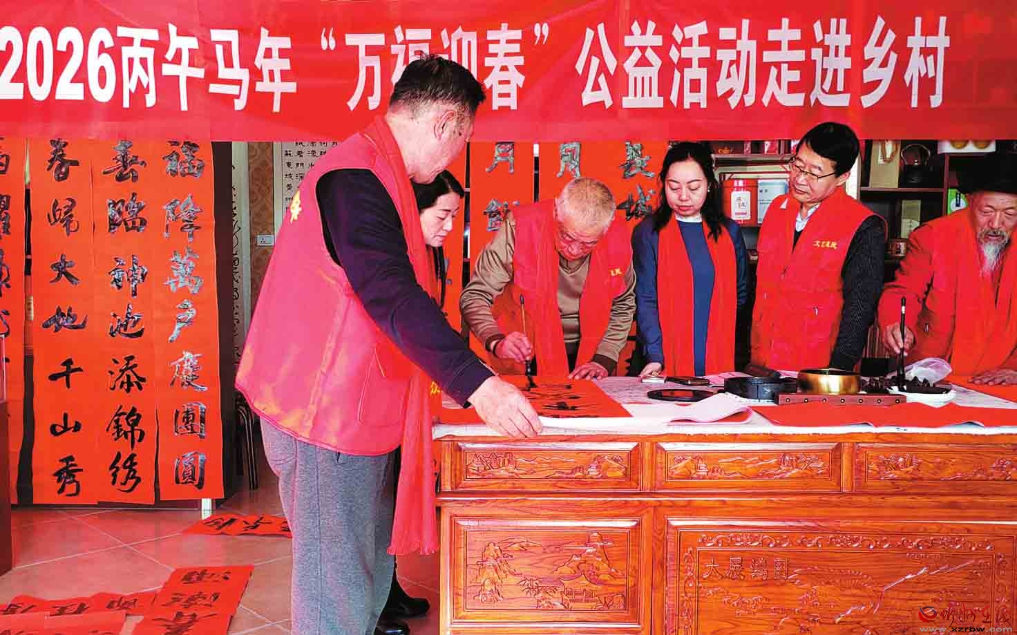 神池縣文聯(lián)、縣書法家協(xié)會積極響應省市“萬福迎春走進鄉(xiāng)村”公益活動號召,發(fā)動本地文學愛好者創(chuàng)作兼具地域風情與年俗韻味的原創(chuàng)春聯(lián),近日,兩單位聯(lián)合組織書法愛好者深入鄉(xiāng)村,為村民義務書寫春聯(lián)?;顒蝇F(xiàn)場墨香四溢,一幅幅帶著鄉(xiāng)土溫度的春聯(lián)紅遍村頭巷尾,暖心舉措深受群眾交口稱贊。(楊晉明攝)
