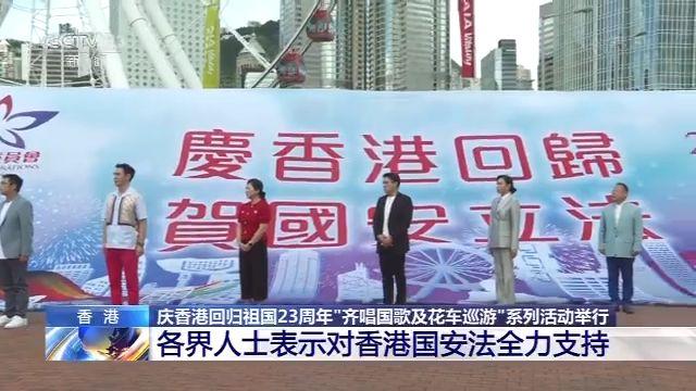昨天(7月1日)上午,香港各界慶典委員會(huì)為慶祝香港回歸祖國(guó)23周年,舉辦“齊唱國(guó)歌及花車(chē)巡游”等系列活動(dòng),各界人士表達(dá)了對(duì)香港回歸祖國(guó)23周年的喜悅之情,以及對(duì)香港國(guó)安法的全力支持。