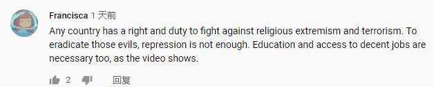 “任何國家都有權(quán)利和義務(wù)打擊宗教極端主義和恐怖主義。要根除這些邪惡……教育和獲得體面工作的機(jī)會(huì)也是必要的。”近日,一名海外網(wǎng)友Francisca在看完中央廣播電視總臺(tái)旗下CGTN播出的《巍巍天山——中國新疆反恐記憶》紀(jì)錄片后這樣評(píng)價(jià)。