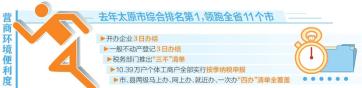 近日,記者從太原市政府新聞辦召開的新聞發(fā)布會上獲悉,山西省營商環(huán)境整體評估報告顯示,去年太原市營商環(huán)境便利度綜合排名第1,領(lǐng)跑全省11個市;在國家發(fā)改委組織的對包括直轄市、計劃單列市、省會城市在內(nèi)的41座城市進行的營商環(huán)境評價中,太原市營商環(huán)境便利度獲評優(yōu)良。