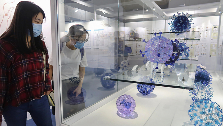 △“命運(yùn)與共,攜手抗疫——科技與健康同行”主題展覽7月在上??萍拣^開幕,這是展覽現(xiàn)場(chǎng)。