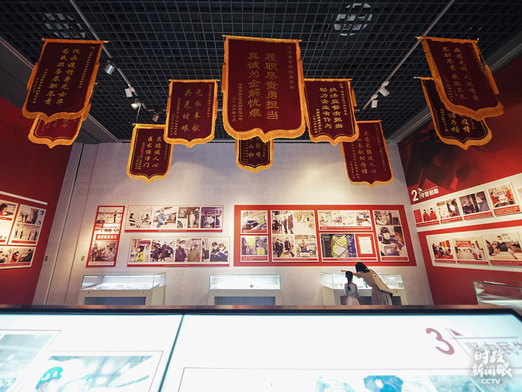 △“人民至上——天津市抗擊新冠肺炎疫情紀(jì)實(shí)展”在天津博物館開展。這是現(xiàn)場(chǎng)陳列的錦旗。
