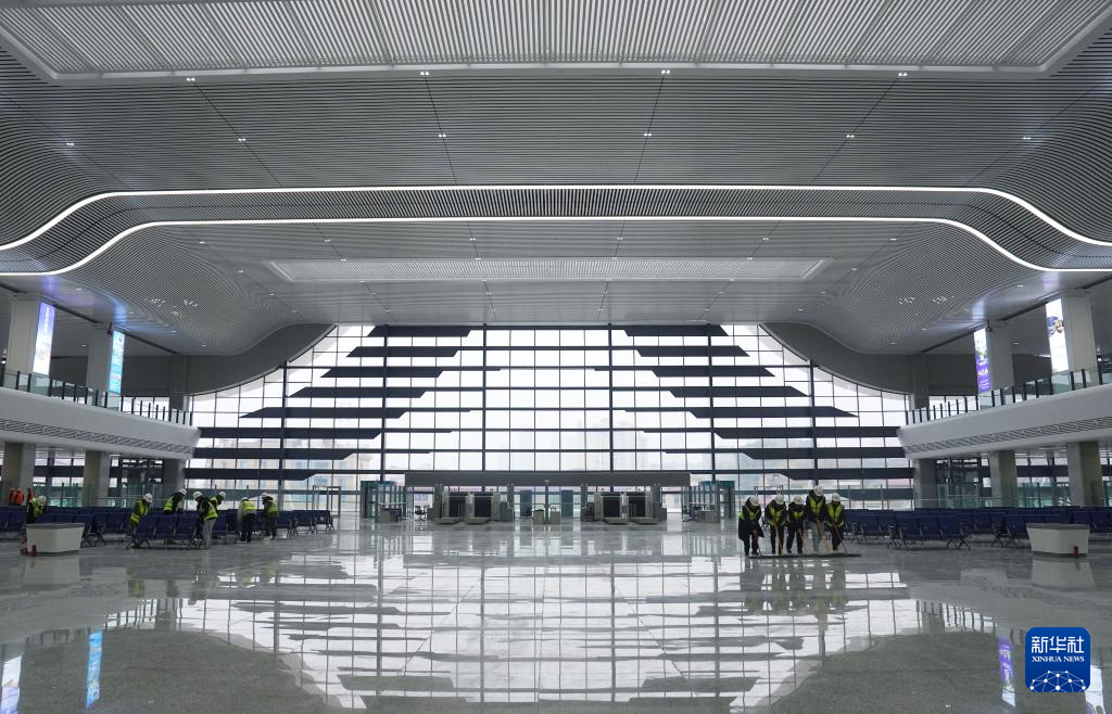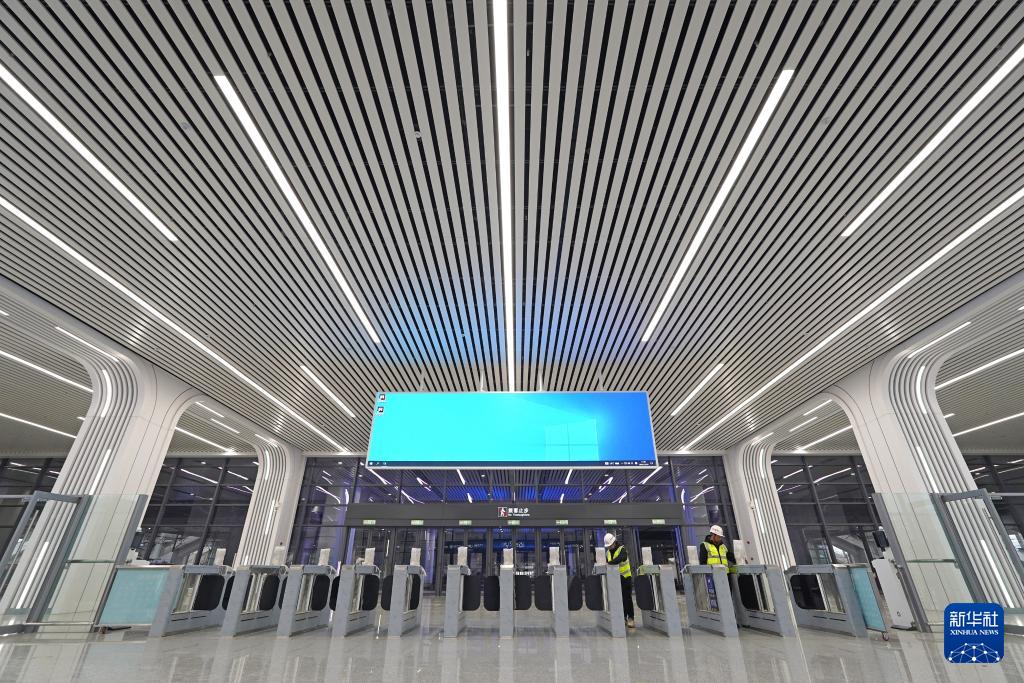 12月10日,施工人員在廬山站出站口調(diào)試閘機(jī)設(shè)備。(新華社記者 萬象 攝)
