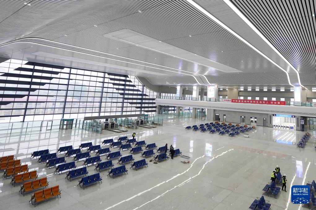 這是12月10日拍攝的廬山站候車大廳。(新華社記者 萬象 攝)