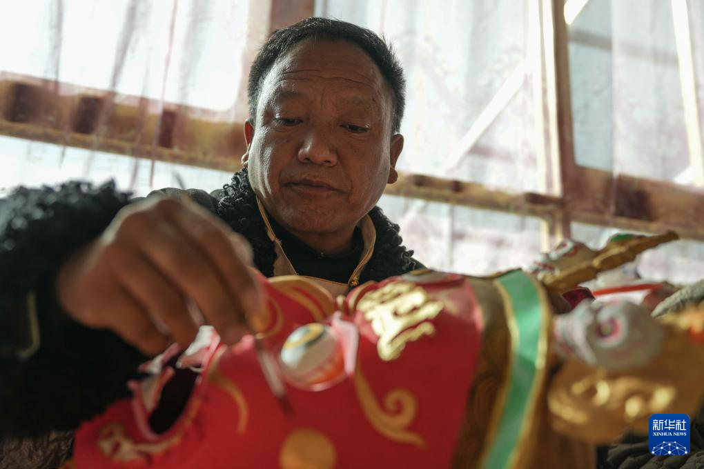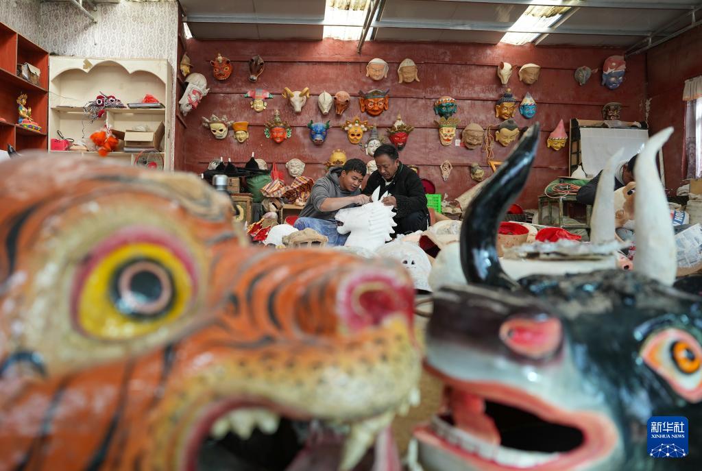 12月9日,西洛在合作社制作西藏傳統(tǒng)面具。(新華社記者 晉美多吉 攝)
