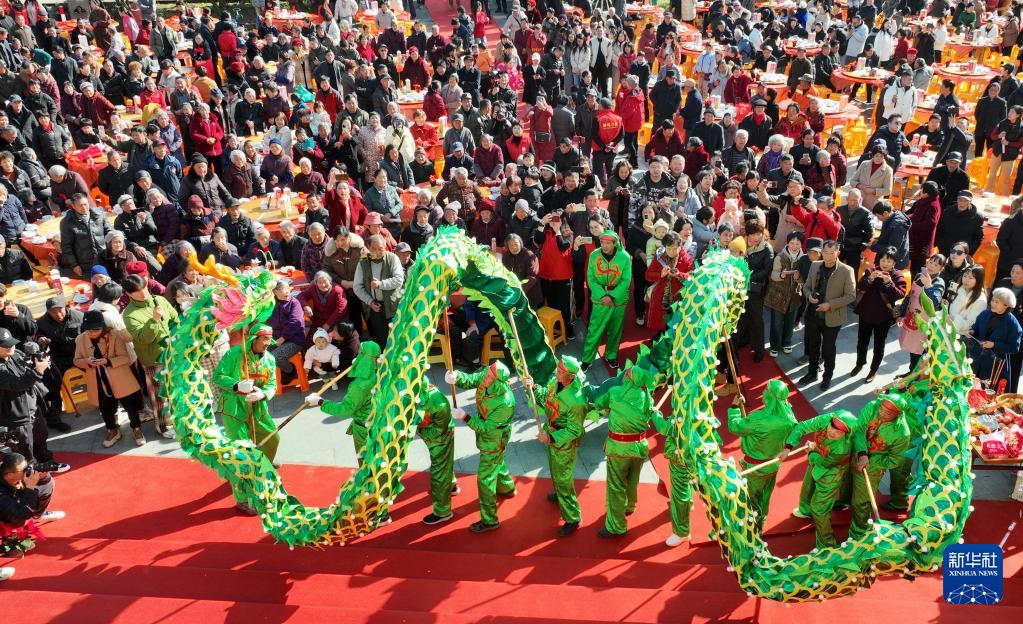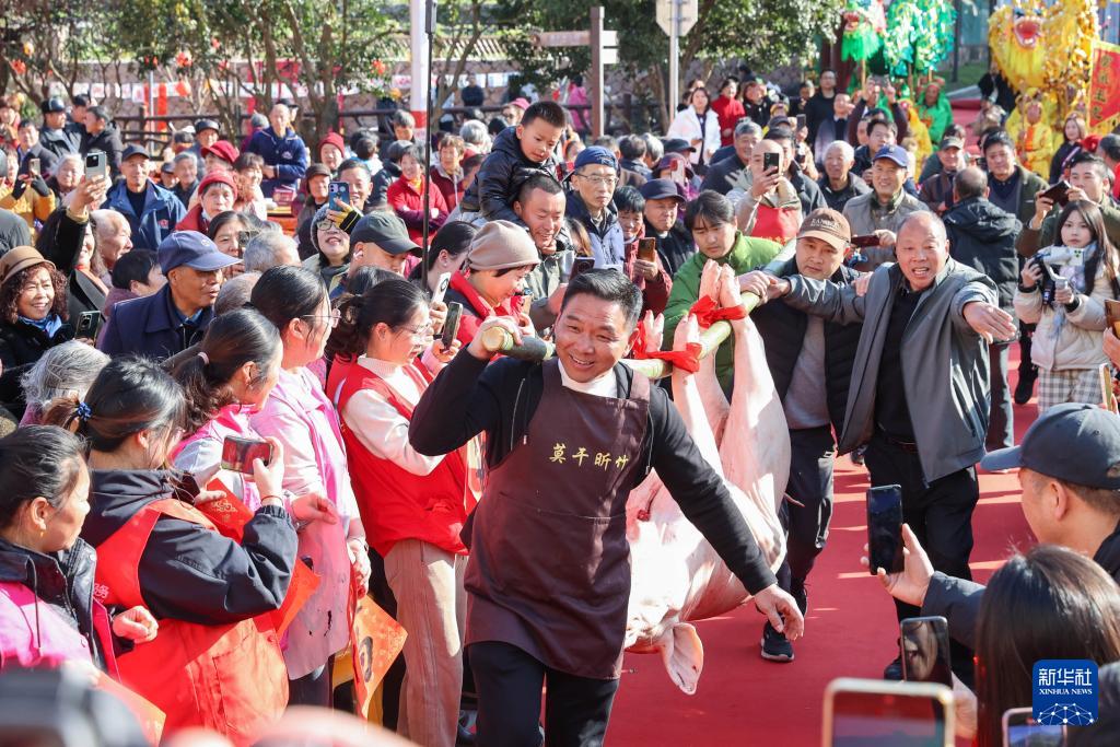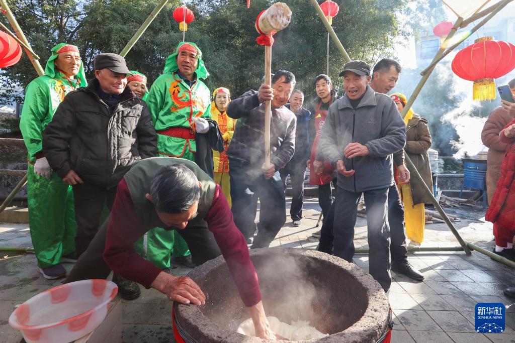 12月16日,浙江省湖州市德清縣莫干山鎮(zhèn)后塢村舉辦第五屆民俗集福節(jié)“年豬飯”活動,打年糕、舞龍燈、做圓子、制禮糕、看表演,村民們與前來觀摩的游客一起感受鄉(xiāng)村傳統(tǒng)民俗年味,喜迎新年。