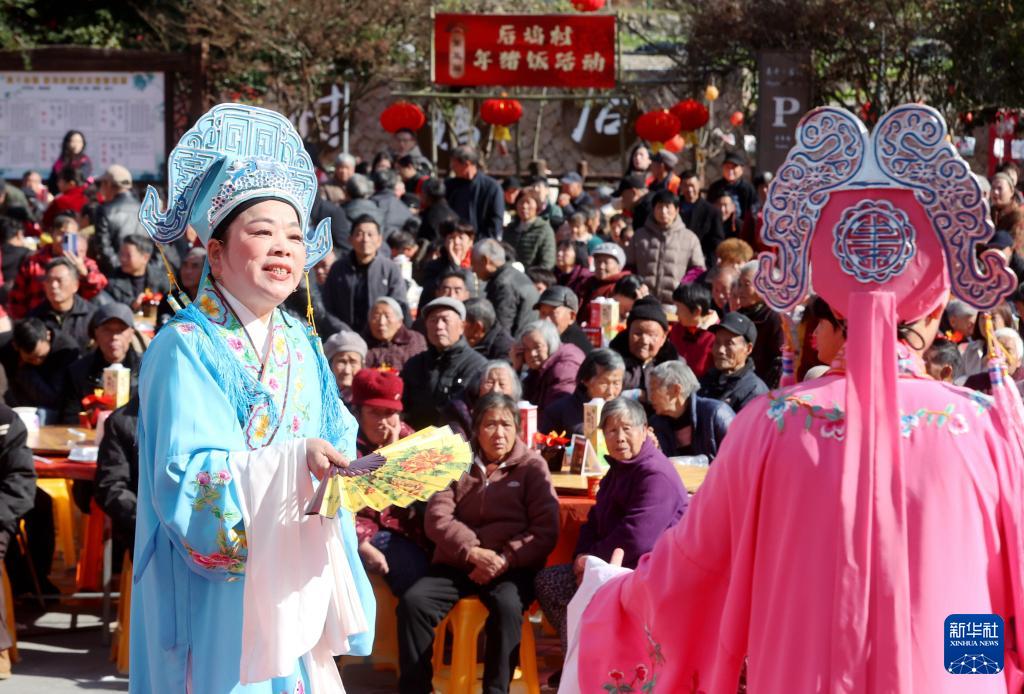 12月16日,在德清縣莫干山鎮(zhèn)后塢村,村民在觀看戲曲表演。(新華社發(fā) 謝尚國 攝)