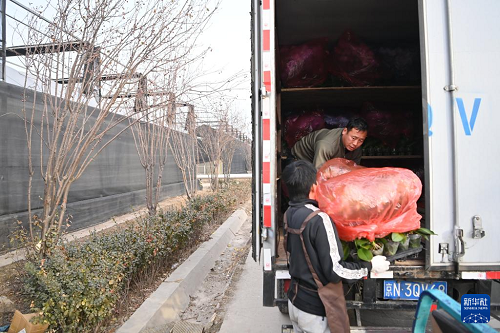 12月19日,花農(nóng)將出售的蝴蝶蘭打包裝車。(新華社記者 李然 攝)