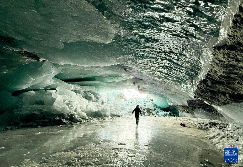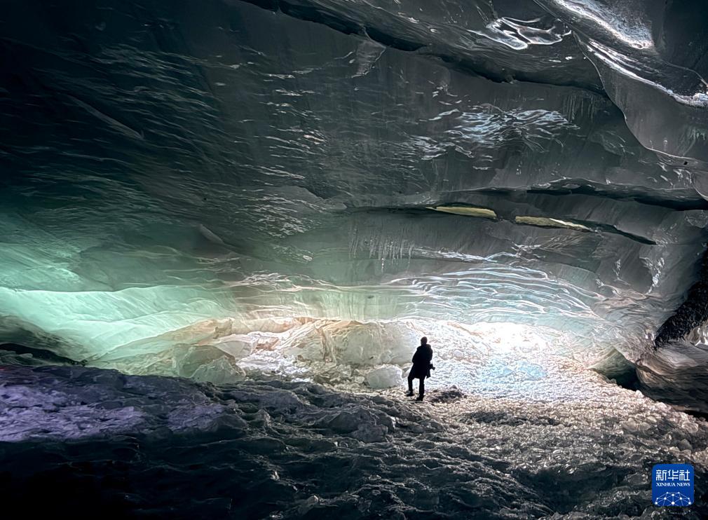 經(jīng)初步勘測,該冰洞深約152米,寬約18.2米,在陽光的照射下,冰壁晶瑩剔透,十分壯美。
