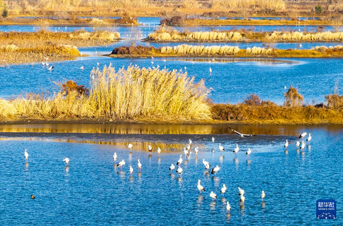 近日,東方白鸛成群南下越冬,途經(jīng)江蘇興化里下河國(guó)家濕地公園,在淺灘棲息、覓食,組成一幅和諧的生態(tài)畫(huà)卷。東方白鸛是國(guó)家一級(jí)保護(hù)動(dòng)物,有“鳥(niǎo)界大熊貓”之稱。