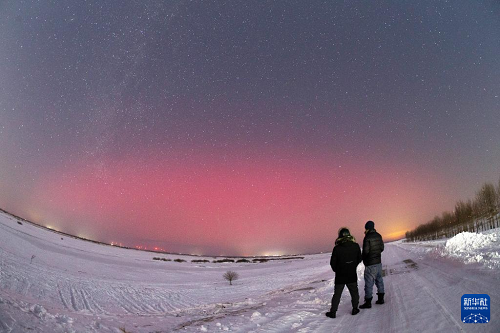 2025年1月1日,攝影愛好者在黑龍江省佳木斯富錦市松花江沿岸觀看極光。(新華社發(fā) 庚喜慶 攝)