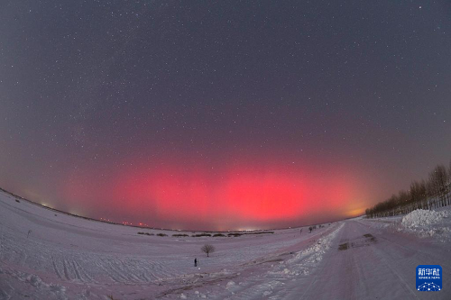 2025年1月1日在黑龍江省佳木斯富錦市松花江沿岸拍攝的極光。(新華社發(fā) 曲玉寶 攝)