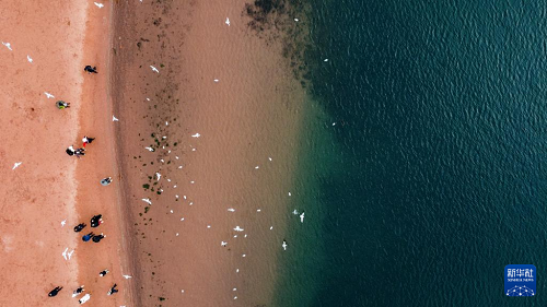 1月12日,游客在撫仙湖邊游玩(無(wú)人機(jī)照片)。(新華社記者 王靜頤 攝)