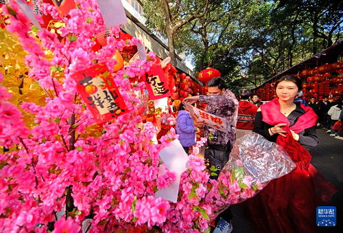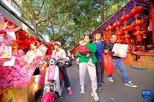 隨著春節(jié)的臨近,廣西南寧市交易場附近的新春飾品攤位生意日益紅火,眾多市民前來采購春聯(lián)、窗花等新春飾品。