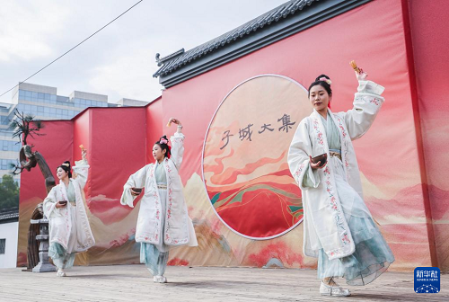 1月14日,浙江省嘉興市南湖區(qū)子城遺址公園上演“宋韻流芳·嘉興記憶”傳統(tǒng)民俗演出。(新華社記者 徐昱 攝)